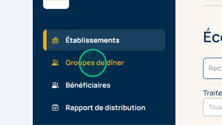 Cliquez sur « Groupes de dîner » dans le menu de gauche.