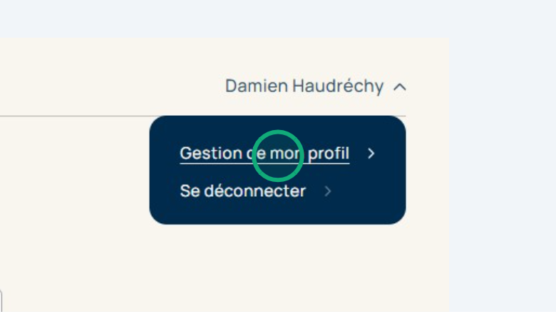 En haut de la plateforme, vous pouvez accéder aux paramètres de votre profil ou vous déconnecter en cliquant sur votre nom.