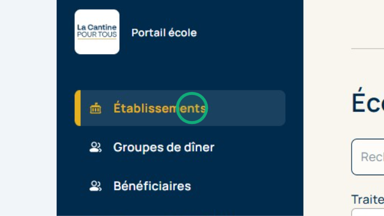 Cette section permet de voir la liste des élèves inscrits au service La Cantine dans les écoles. Vous pourrez également modifier certaines informations sur un élève.